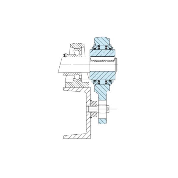 Unit is delivered grease lubricated ready for installation in either a horizontal or vertical position. Primarily used as a backstop, this type provides a high torque capacity with a minimum space requirement. The design allows installation in difficult environments such as high humidity or water splash areas. A bolt, secured to a fixed part of the machine and passing through the slot in the torque arm, provides the rotational stop. Radial clearance on this bolt should be equal to 1–3 % of the slot width. The torque arm and the bearings must not be prestressed.
